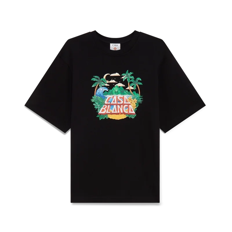Le t-shirt Casa Beach Wave est un modèle à manches courtes imprimé, confectionné en coton biologique et orné d’un motif emblématique rappelant les t-shirts souvenirs que l’on achète lors de vacances à la plage. Il est doté d’un col rond classique.