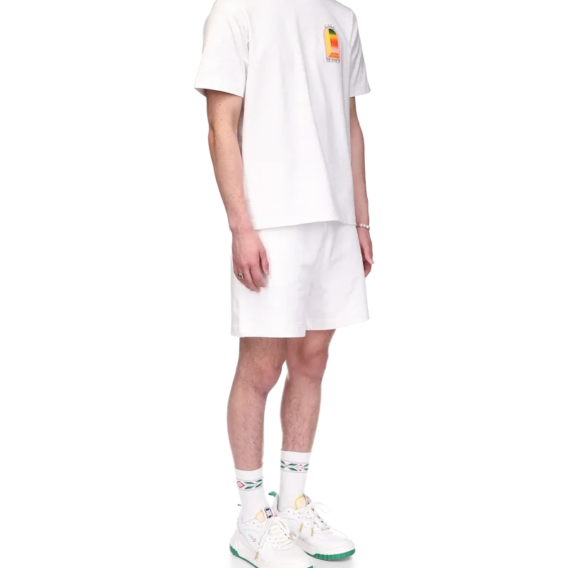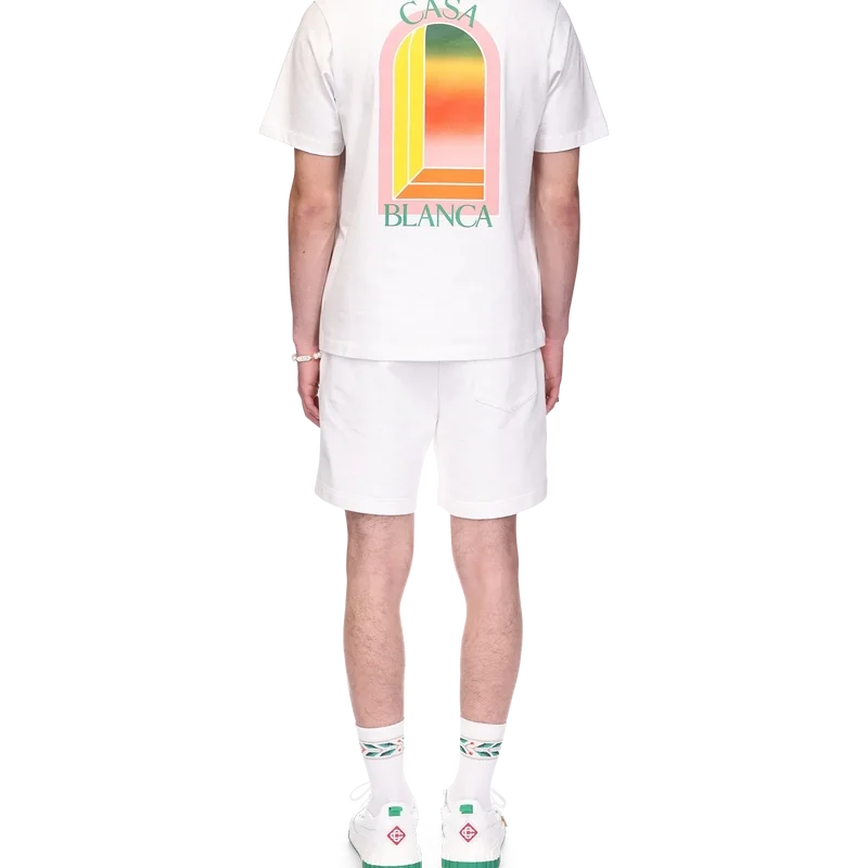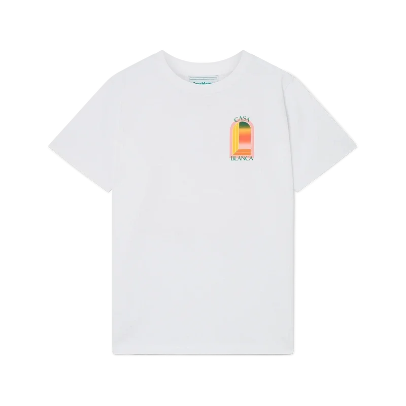 Le t-shirt Gradient L’arche est un modèle à manches courtes orné de l’imprimé Arch dans un dégradé de couleurs comprenant du jaune chaud, de l’orange, du rose et du vert, représentatif des riches échanges entre les disciplines culturelles dans l’art, la musique et le cinéma africains. Confectionné en coton biologique, doté d’un col rond classique et conçu pour une coupe décontractée.