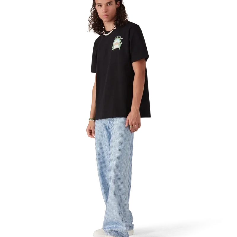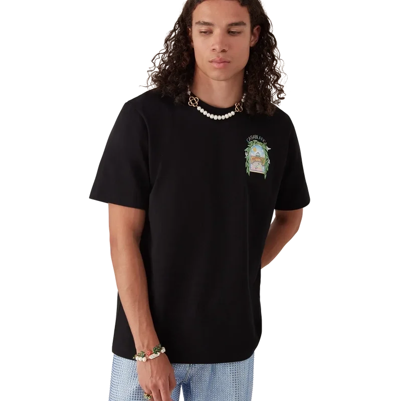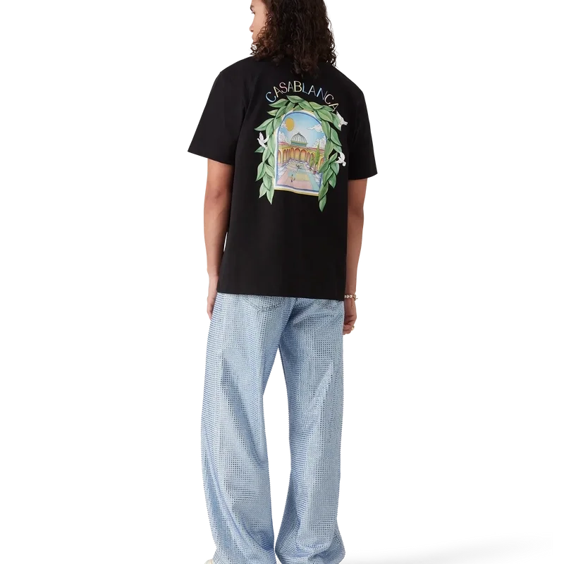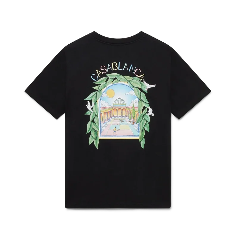 Le t-shirt L’arche De Tennis est un modèle à manches courtes orné d’un motif sérigraphié saisonnier où la fluidité de la nature rencontre la structure du design artificiel : l’arche, symbole abstrait de force. Il est doté d’un col rond classique.