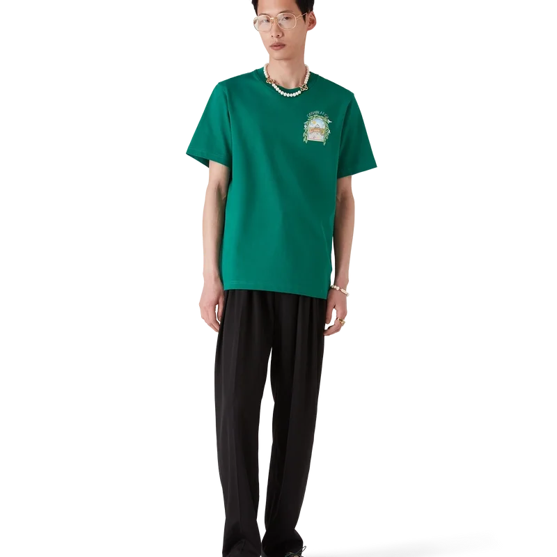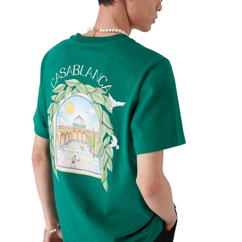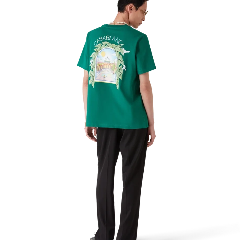 Le t-shirt L’arch De Tennis est un modèle à manches courtes orné d’un motif sérigraphié saisonnier où la fluidité de la nature rencontre la structure du design artificiel : l’arche, symbole abstrait de force. Il est doté d’un col rond classique.