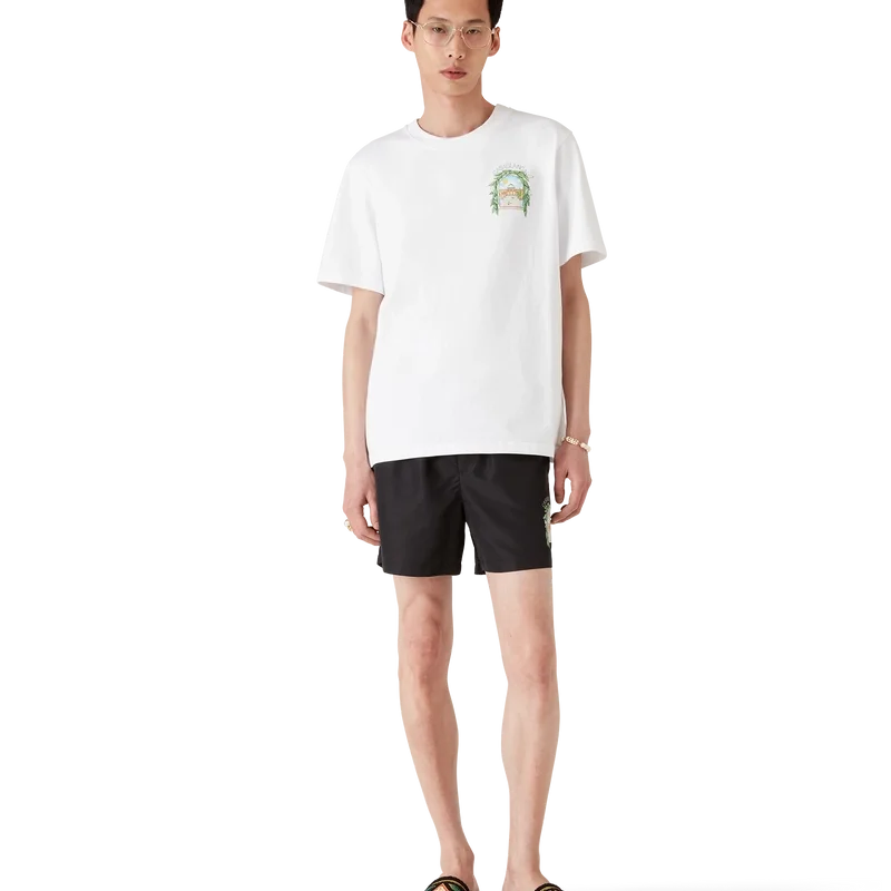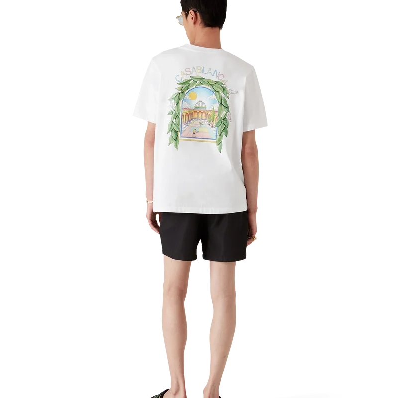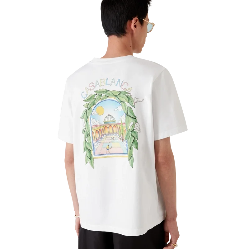 Le t-shirt L’Arche De Tennis est un modèle à manches courtes orné d’un motif sérigraphié saisonnier où la fluidité de la nature rencontre la structure du design artificiel : l’arche, symbole abstrait de force. Il est doté d’un col rond classique.