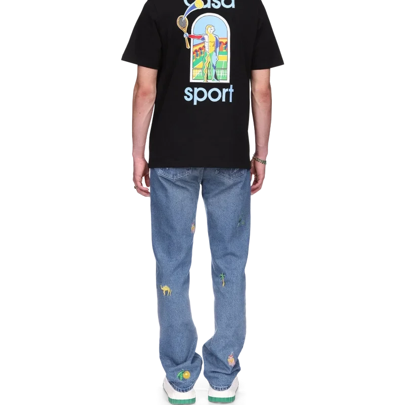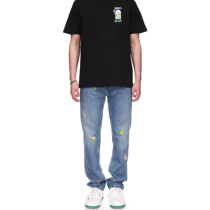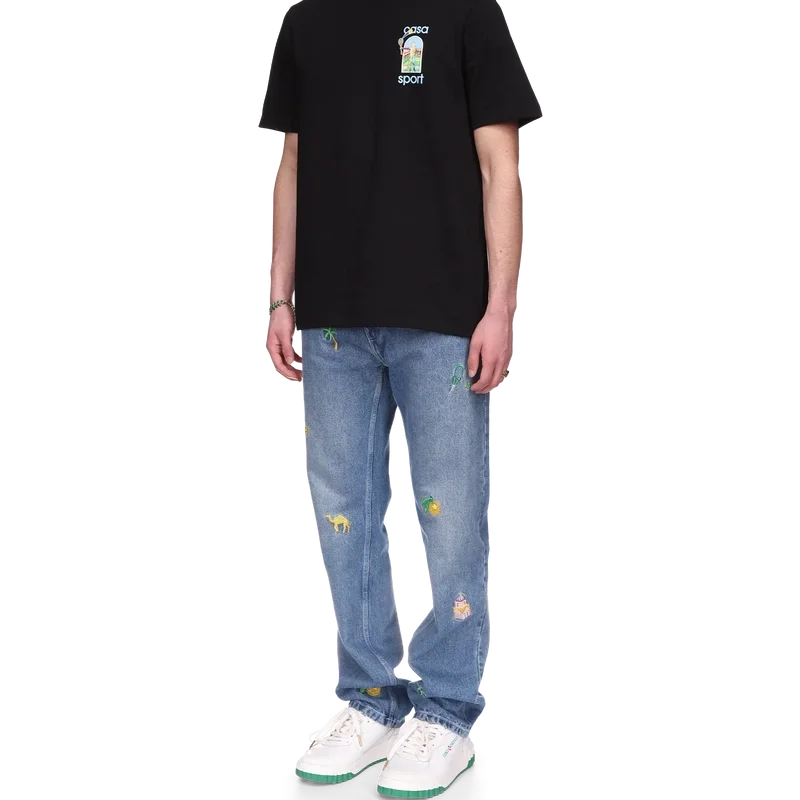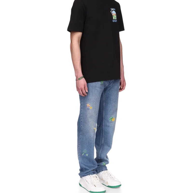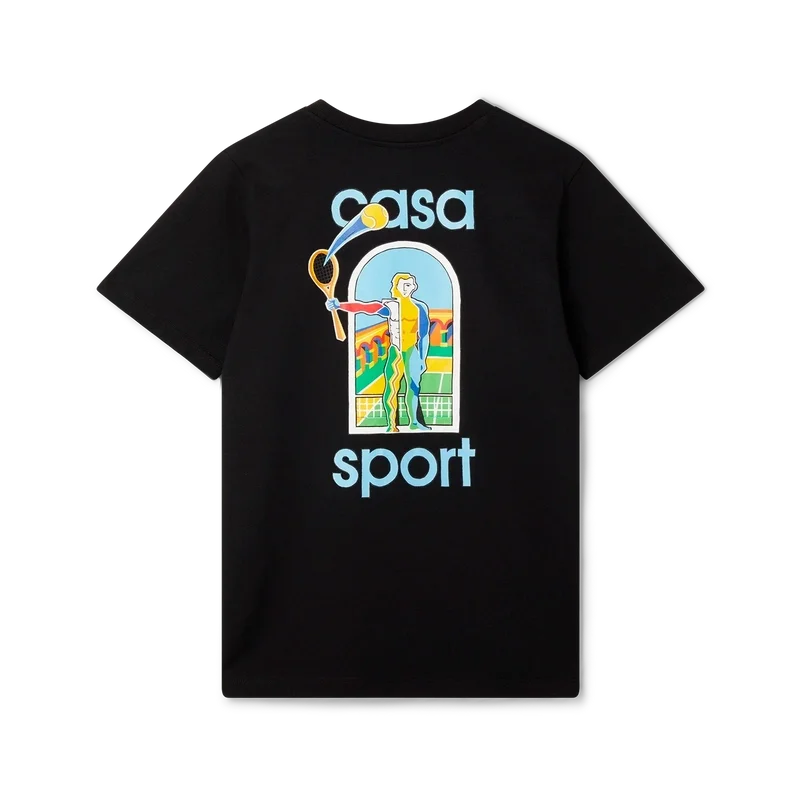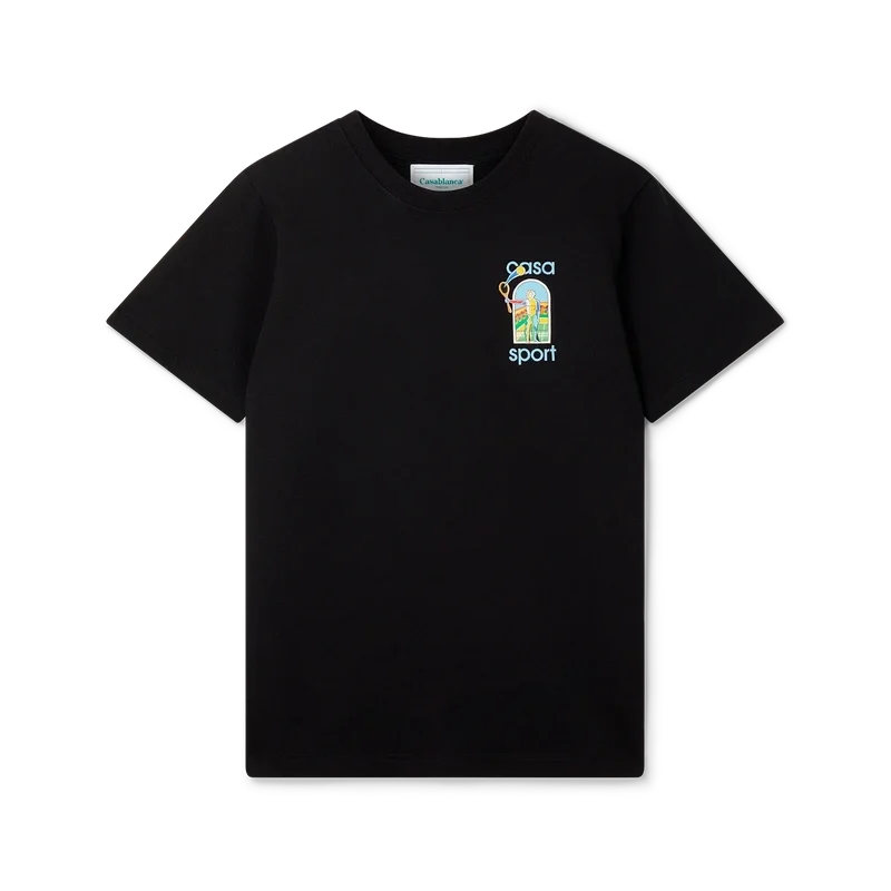 Le t-shirt Le Jeu Colora est un modèle imprimé inspiré des œuvres d’art afro-cubistes, mêlant peintures audacieuses et cubisme, comme on en voit au Nigeria. Confectionné en coton biologique, il arbore les illustrations de la maison au dos et sur la poitrine gauche, et se termine par un col rond classique.