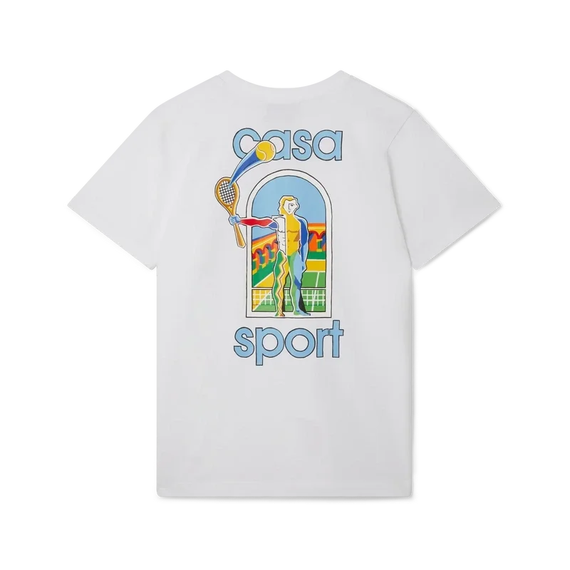 Le t-shirt Le Jeu Colora présente un motif imprimé inspiré des œuvres d’art afro-cubistes, mêlant des peintures audacieuses et le cubisme tel qu’on le voit au Nigeria, avec un style adapté à notre monde. Confectionné en coton biologique, il arbore le motif saisonnier de la maison au dos et sur la poitrine gauche. Il est doté d’un col rond classique.