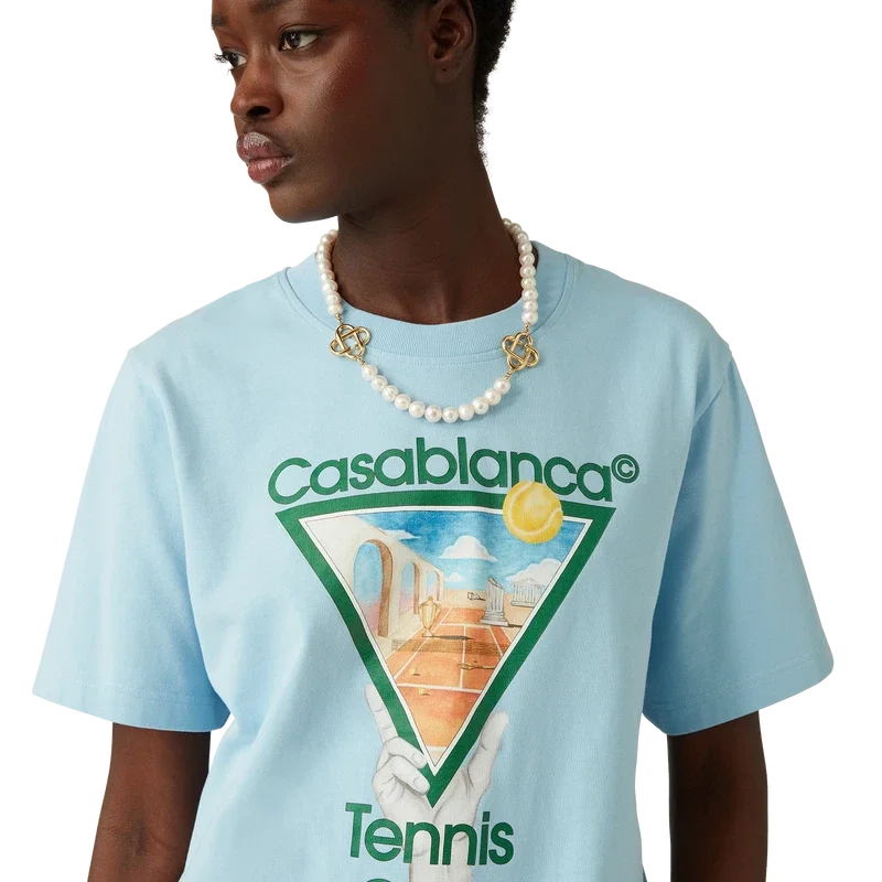 Le t-shirt « Metaphysical Tennis Icon » est un modèle à manches courtes arborant le motif saisonnier de la Maison, inspiré par l’étude continue de la beauté classique et du charme contemporain de la Grèce antique. Il est doté d’un col rond classique.