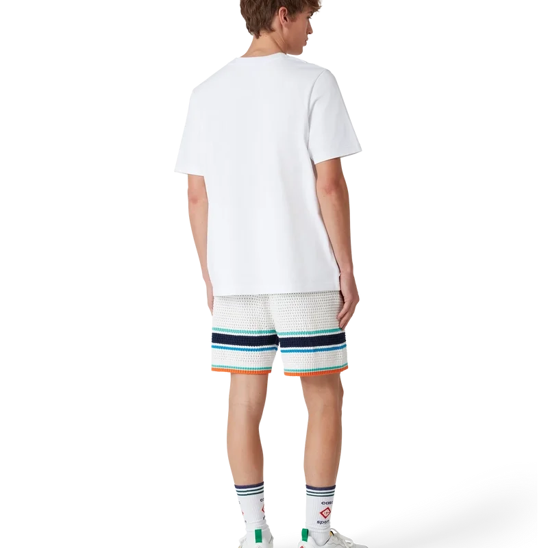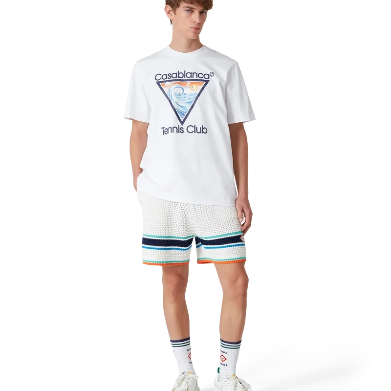 Le t-shirt Tennis Club Icon est un modèle à manches courtes imprimé, confectionné en coton biologique. Il présente une interprétation saisonnière de notre motif emblématique Tennis Club Icon, avec des éléments de design inspirés de la nature, de l’architecture et du tennis. Il est doté d’un col rond classique.
