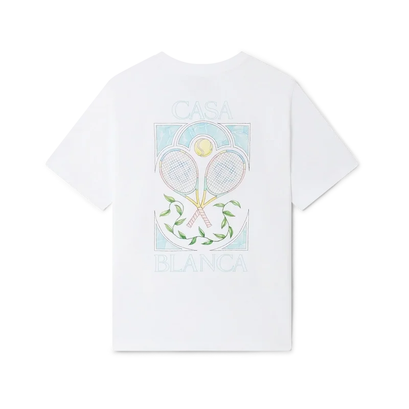 Le T-shirt Tennis Pastelle est un modèle à manches courtes imprimé, orné d’illustrations inspirées de la nature, de l’architecture et du tennis, dans les couleurs pastel de la saison. Confectionné en coton biologique, il est doté d’un col rond classique à bord-côtes.