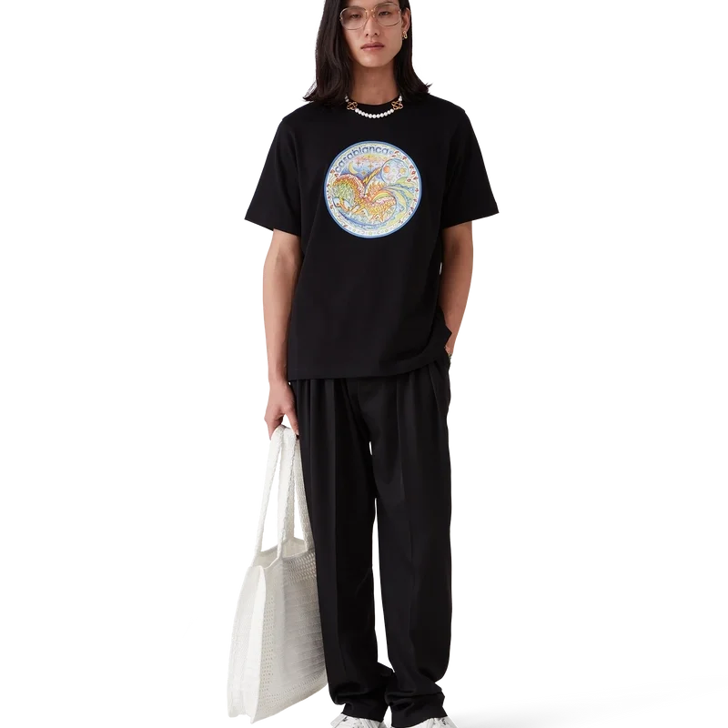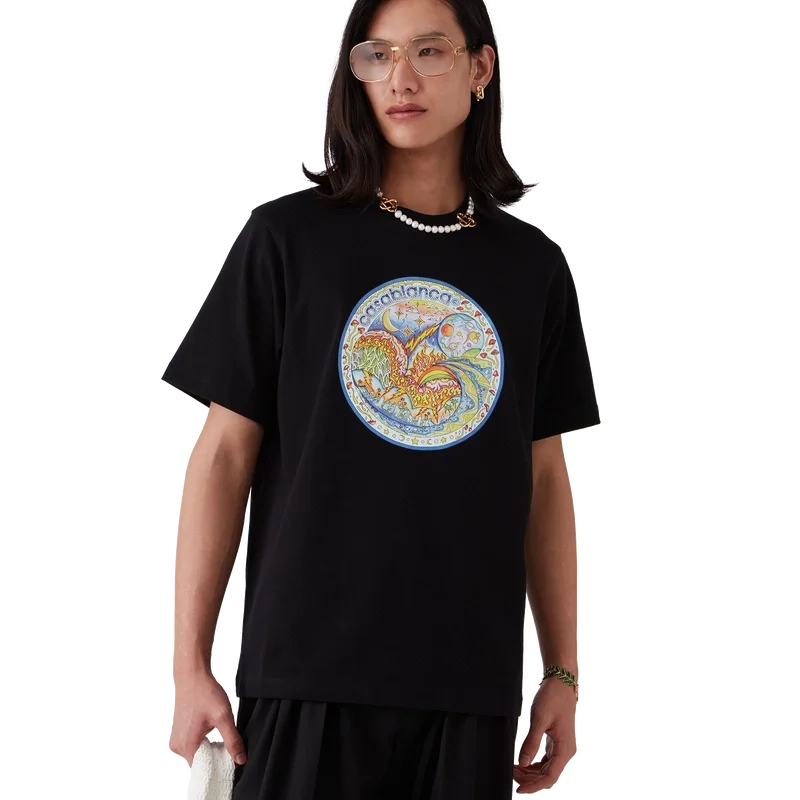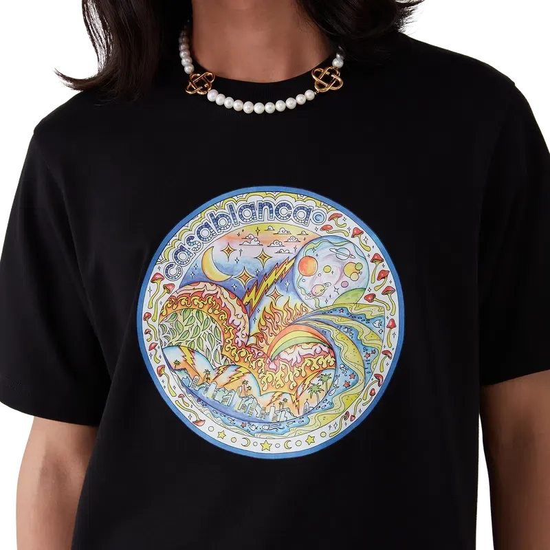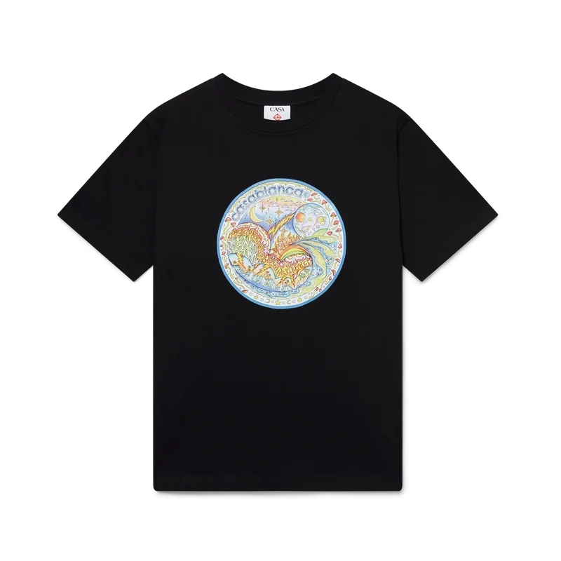 Le t-shirt « The Four Elements » est un modèle à manches courtes imprimé, confectionné en coton biologique et orné d’un motif emblématique qui réunit tous les éléments de La : la ligne d’horizon, la plage, le feu, la végétation et l’astronomie. Il est doté d’un col rond classique.