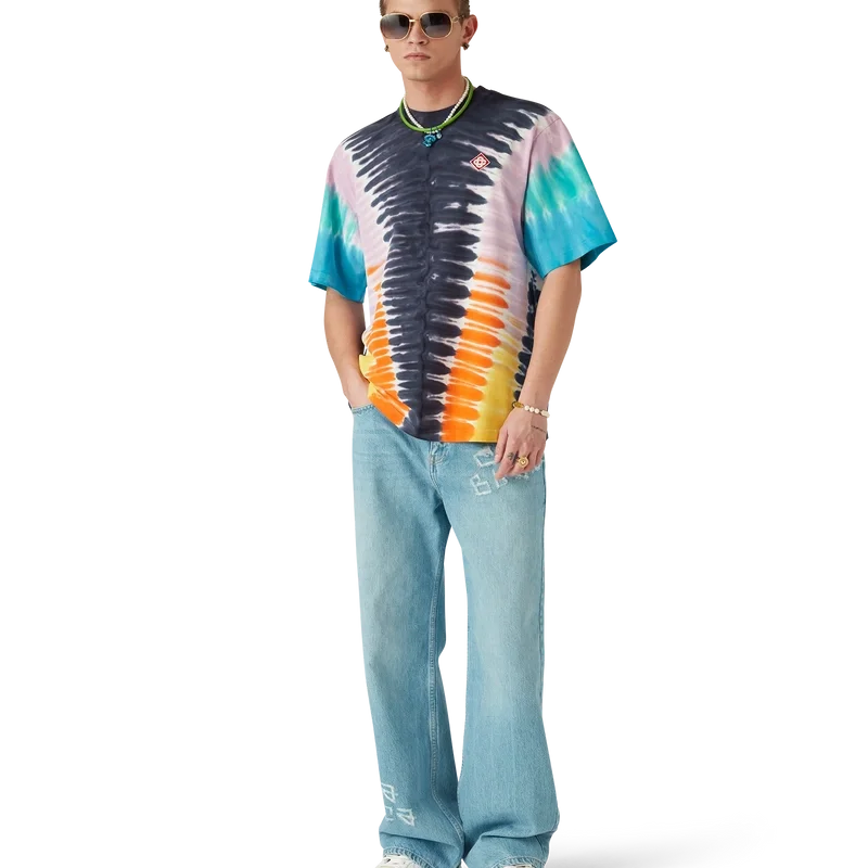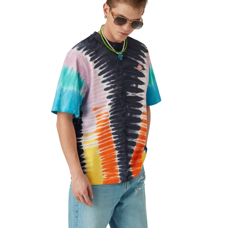 Le t-shirt « Gradient Tie Dye » est un modèle à manches courtes imprimé, confectionné en coton biologique et orné d’un motif tie-dye emblématique qui rappelle les t-shirts souvenirs que l’on achète lors de vacances à la plage. Il est doté d’un col rond classique et du logo en losange emblématique.