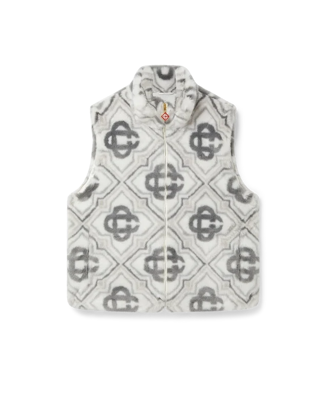 Le gilet en fausse fourrure Monogram est un modèle sans manches luxueux à la texture douce, confectionné en tissu jacquard en fausse fourrure et orné du logo Diamond Monogram de la Maison. Il est doté d’une fermeture à glissière sur le devant, de poches latérales passepoilées verticales, d’une doublure et d’un col montant.