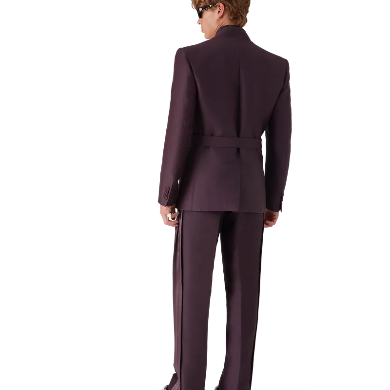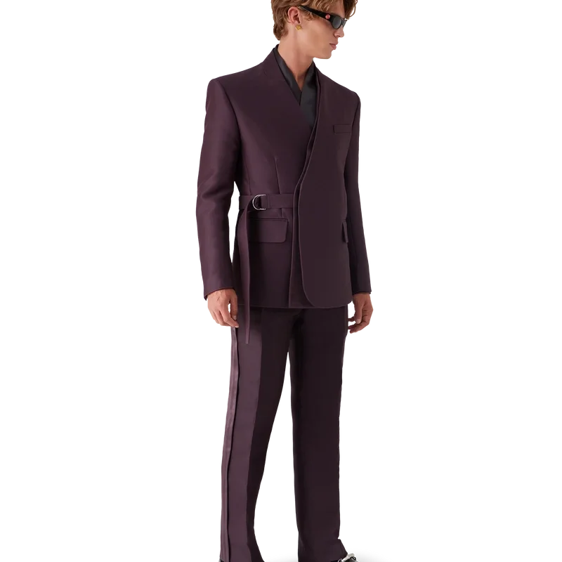 La veste croisée sur mesure en mélange laine-soie est un modèle sans col, à manches longues et à double boutonnage, confectionné dans un tissu de tailleur et inspiré des kimonos traditionnels japonais, avec une attention particulière portée aux encolures croisées et en cache-cœur. Elle est dotée d’une fermeture à ceinture, de poches à rabat et du logo CC entrelacé sur les poignets.