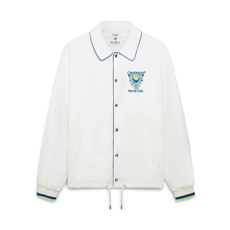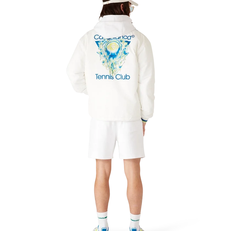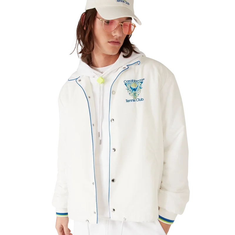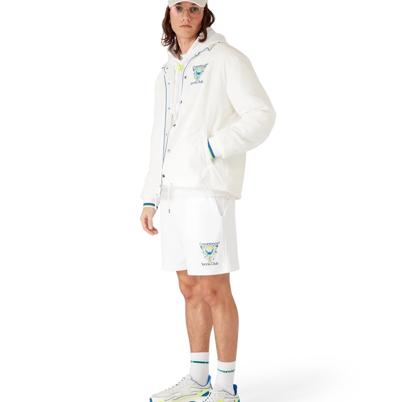 La veste d’entraînement « Tennis Club Icon » présente un design raffiné orné du logo emblématique de la maison représentant une balle de tennis en plein vol, reflétant l’équilibre fondamental entre puissance, vitesse et contrôle. Elle est dotée d’un col, d’une fermeture à boutons, de boutons argentés griffés, de poches passepoilées en biais, d’une doublure, d’un cordon de serrage à l’ourlet, de poignets côtelés et de bordures contrastées sur le col, les poignets et la patte de boutonnage.
