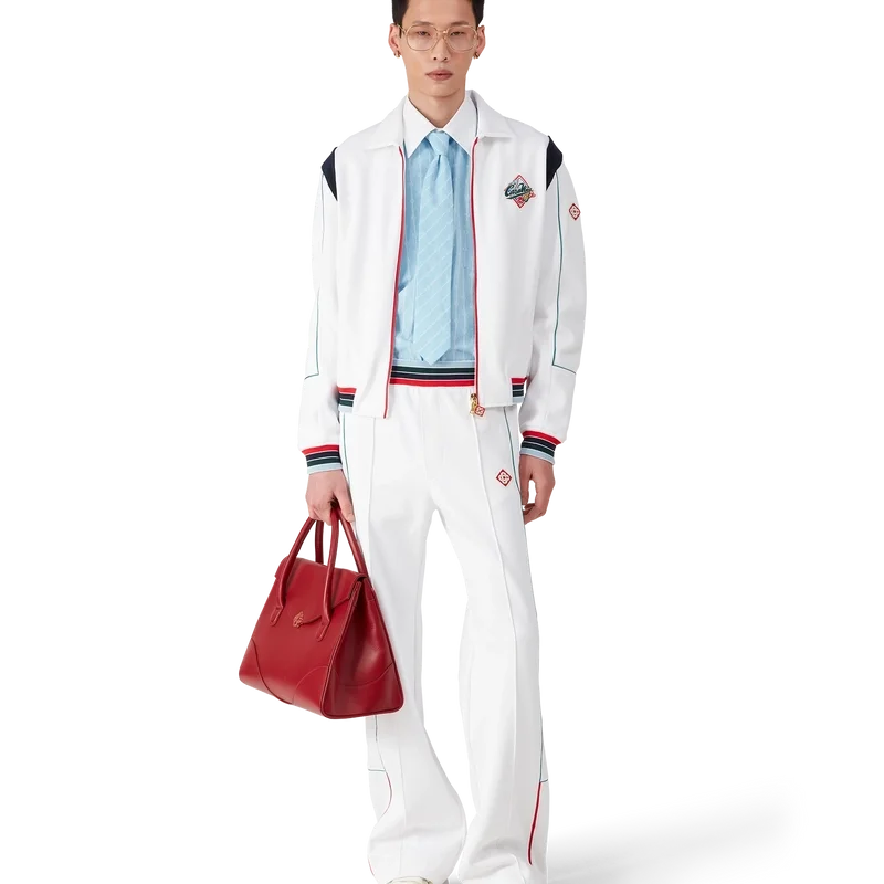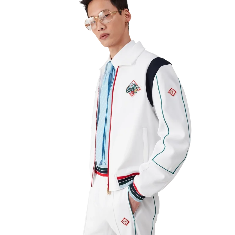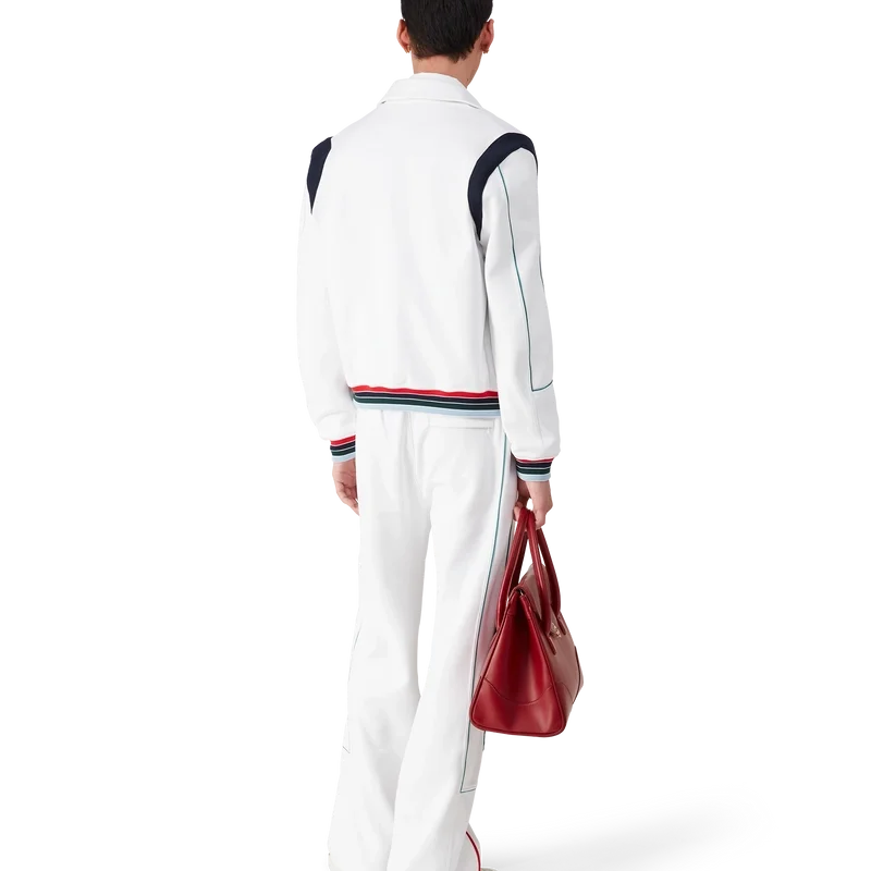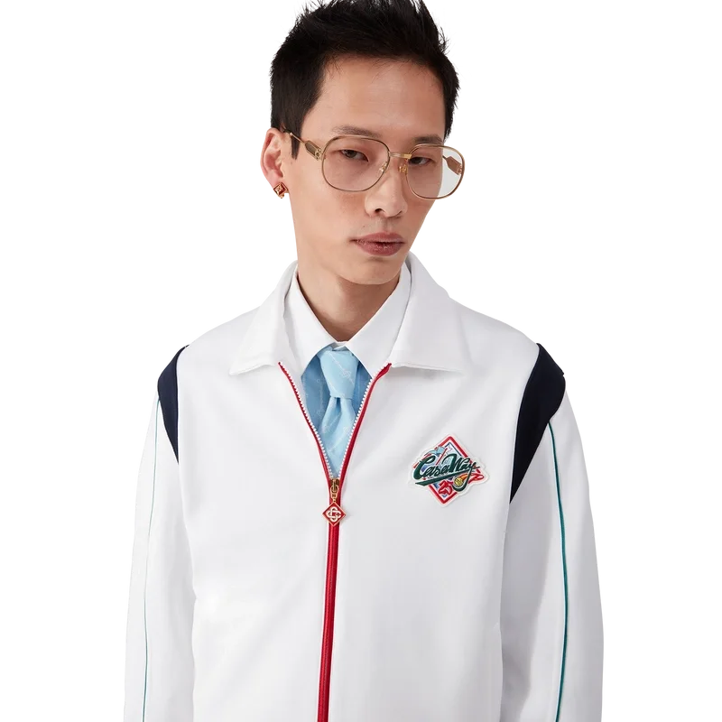 La veste de sport Casa Way est un modèle de sport à manches longues confectionné en tricot. Elle est dotée d’un col côtelé, d’une fermeture à glissière, de poignets et d’un ourlet côtelés rayés, d’un empiècement contrasté aux épaules, d’un motif Casa Way World Series réinterprétant les insignes classiques du baseball américain pour Casa Way Tennis, de détails passepoilés, du logo diamant emblématique, d’une doublure et de poches passepoilées. Conçue pour être portée avec le pantalon de survêtement Casa Way assorti.