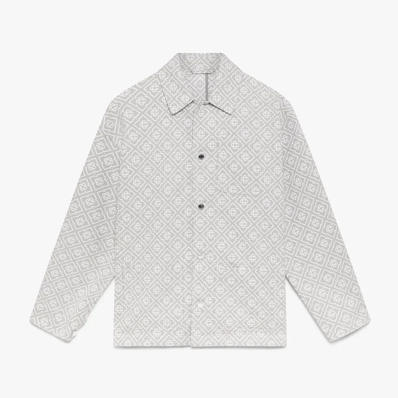 La veste de travail Monogram grise est un modèle à manches longues, ample et décontracté, au design raffiné, orné du motif Monogram de la Maison sur l’ensemble de la pièce. Elle est dotée d’un col, d’une fermeture à boutons, d’une poche poitrine, de poches plaquées sur le devant et de finitions argentées.