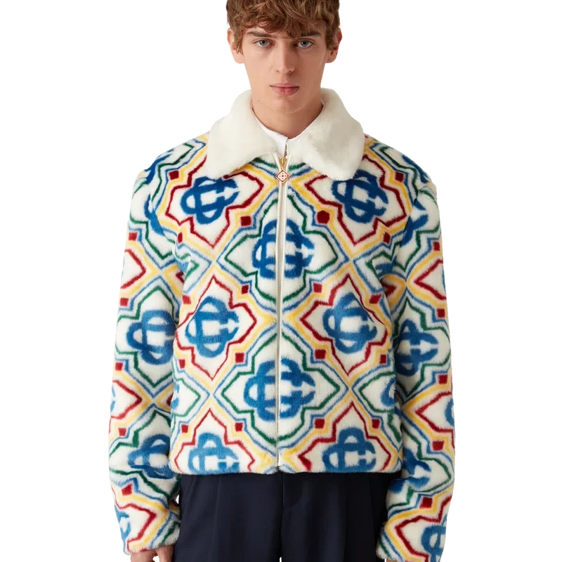 La veste en fausse fourrure jacquard est un modèle luxueux à la texture douce, confectionné dans un tissu jacquard en fausse fourrure orné du logo Diamond Monogram de la Maison. Elle est dotée d’une fermeture à glissière sur le devant, de poches latérales dans les coutures, d’une doublure et d’un col à revers en cuir nappa d’agneau.