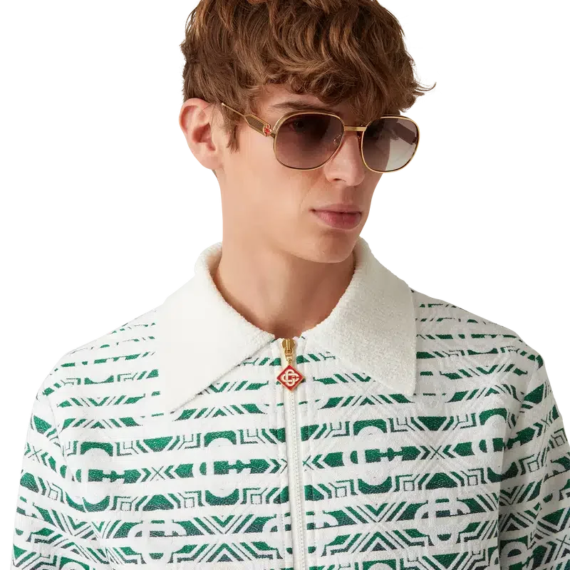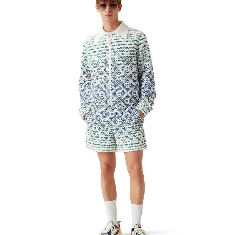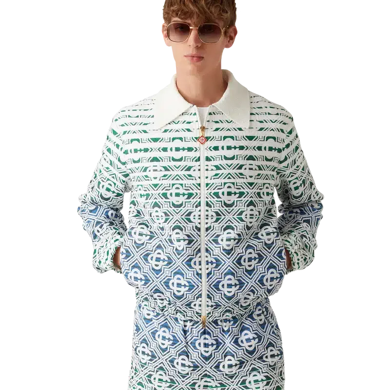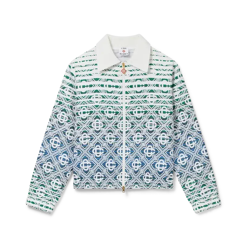 La veste en tissu éponge dégradé Monogram présente un motif imprimé à la texture douce et une silhouette classique. Elle est confectionnée dans un tissu éponge dégradé orné du motif Diamond Monogram emblématique de la Maison. Elle est dotée d’une fermeture à glissière, de finitions plaquées or et d’un col en pointe.