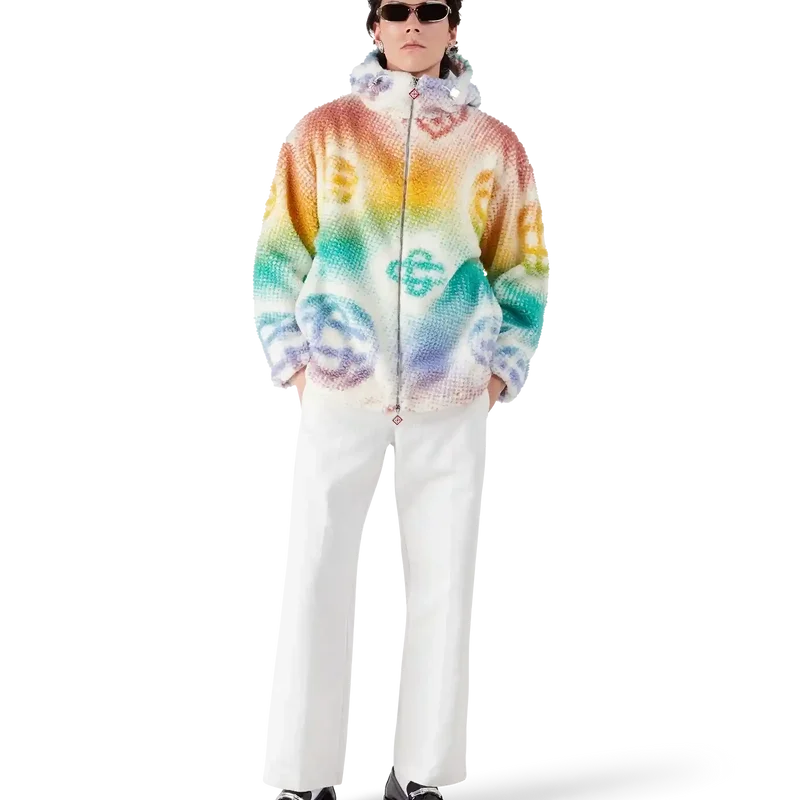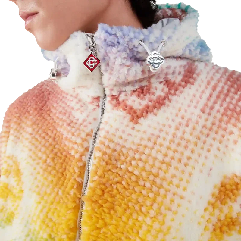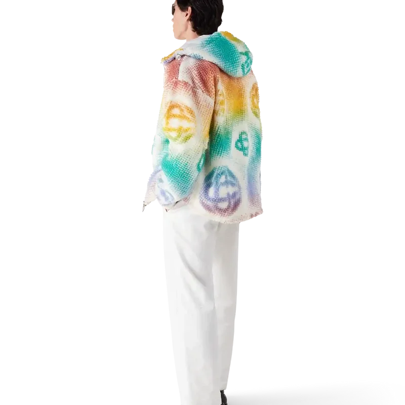 La veste polaire Monogramme en demi-teintes est un modèle contemporain à manches longues entièrement imprimé, mettant en vedette le monogramme de la Maison rendu en demi-teintes à l’aide d’un aérographe, s’inspirant de nos précédentes expérimentations avec cette technique. Elle est dotée d’une capuche, d’une fermeture à cordon avec des embouts en forme de C entrelacés, et d’une fermeture à glissière ornée de la languette en forme de losange emblématique de la Maison.